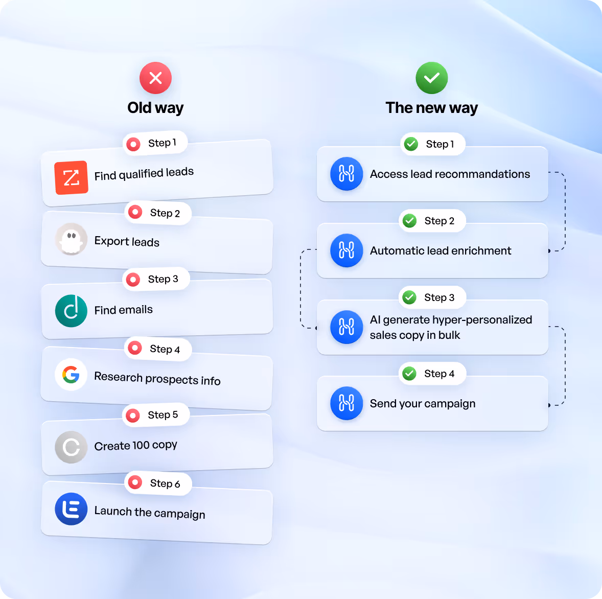Stop the time-consuming task of extracting contacts from Socials, enriching them with email addresses, and putting them on your sales engagement platform.