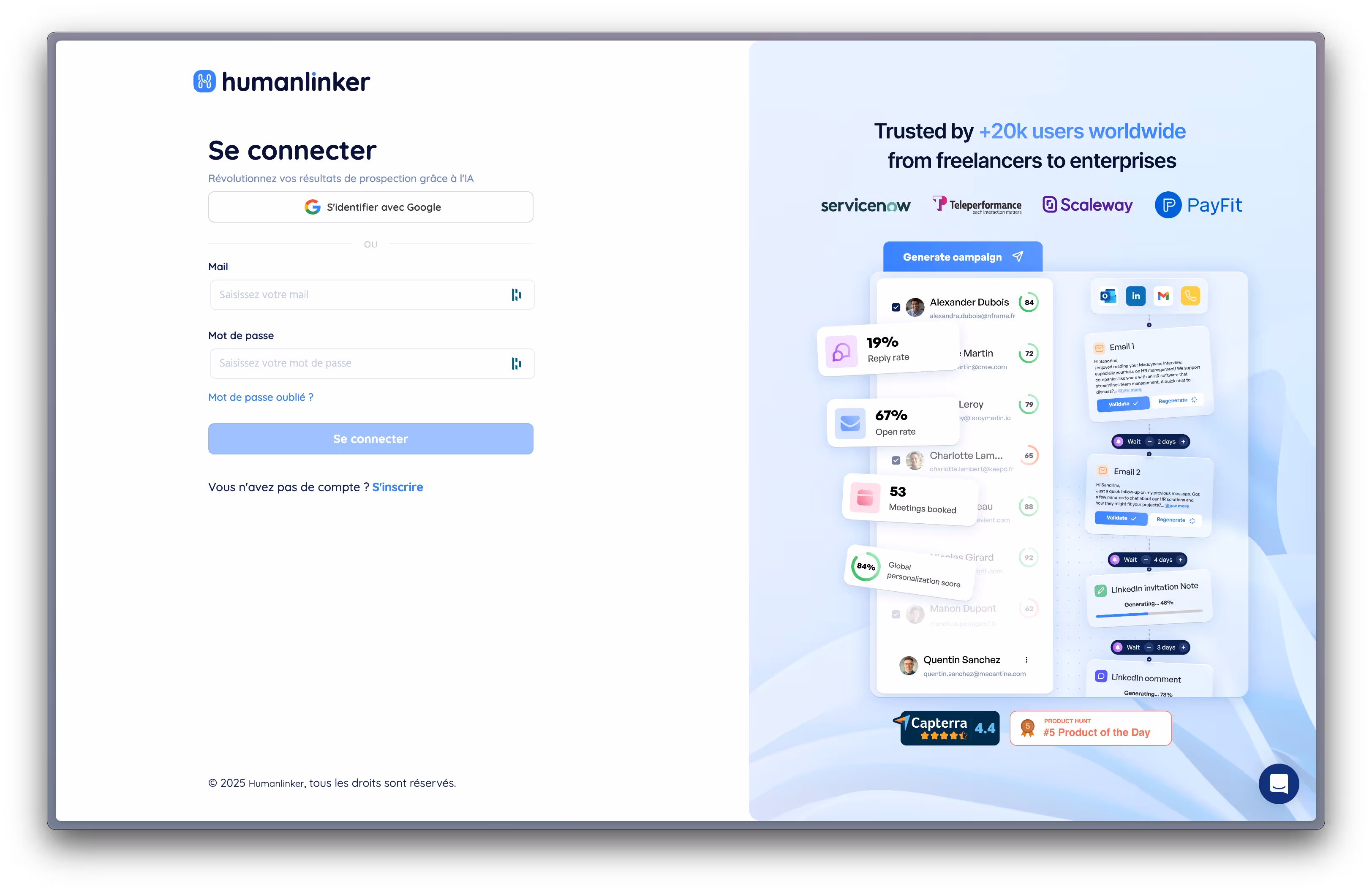 Commencer n’a jamais été aussi simple. Rendez-vous sur Humanlinker et créez votre compte.