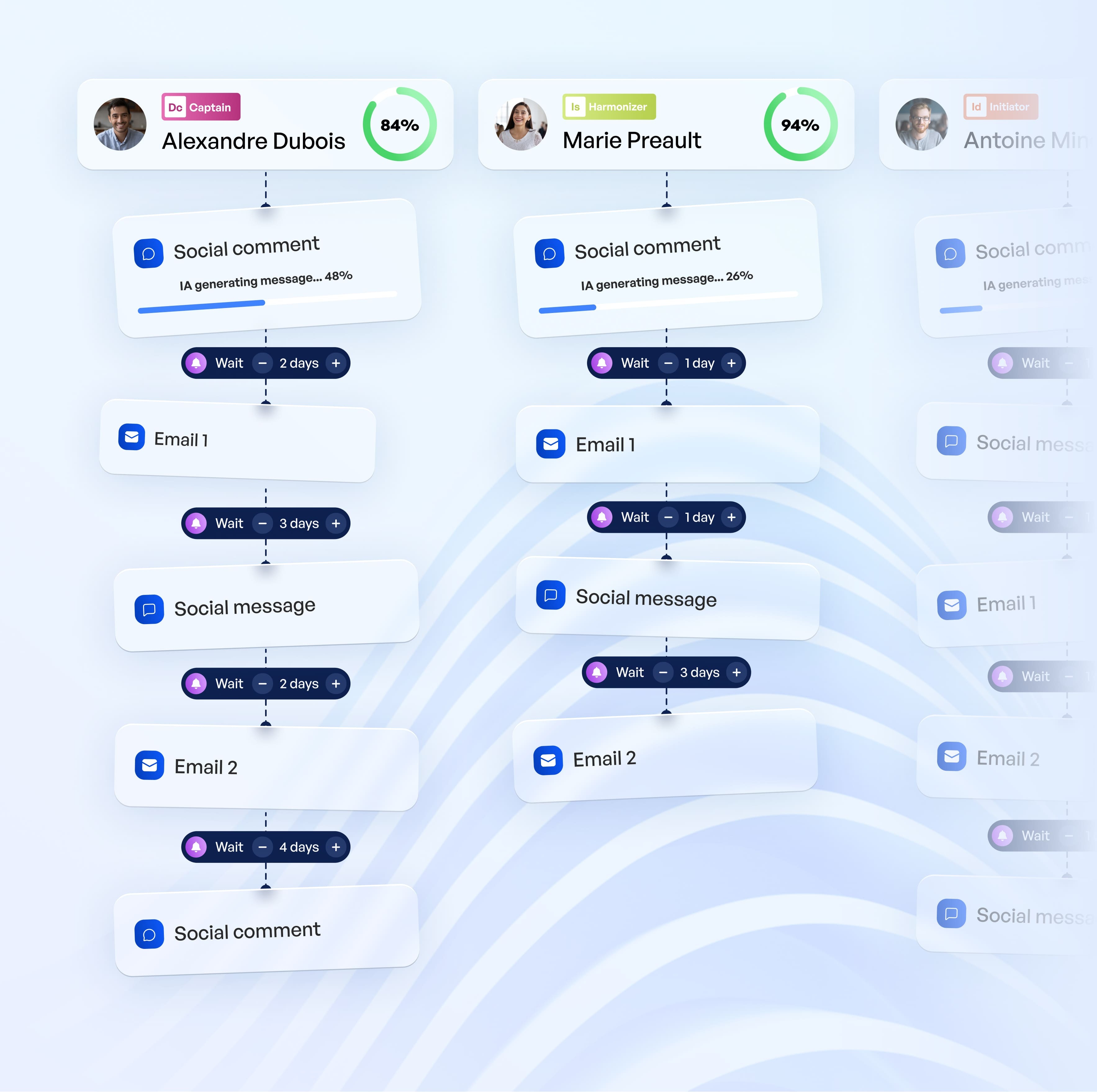 Découvrez la magie du mode campagne en ajoutant des centaines de contacts de différentes manières et laissez l'IA de Humanlinker analyser et enrichir + générer toutes les étapes des séquences pour un impact maximal sur votre succès outbound.