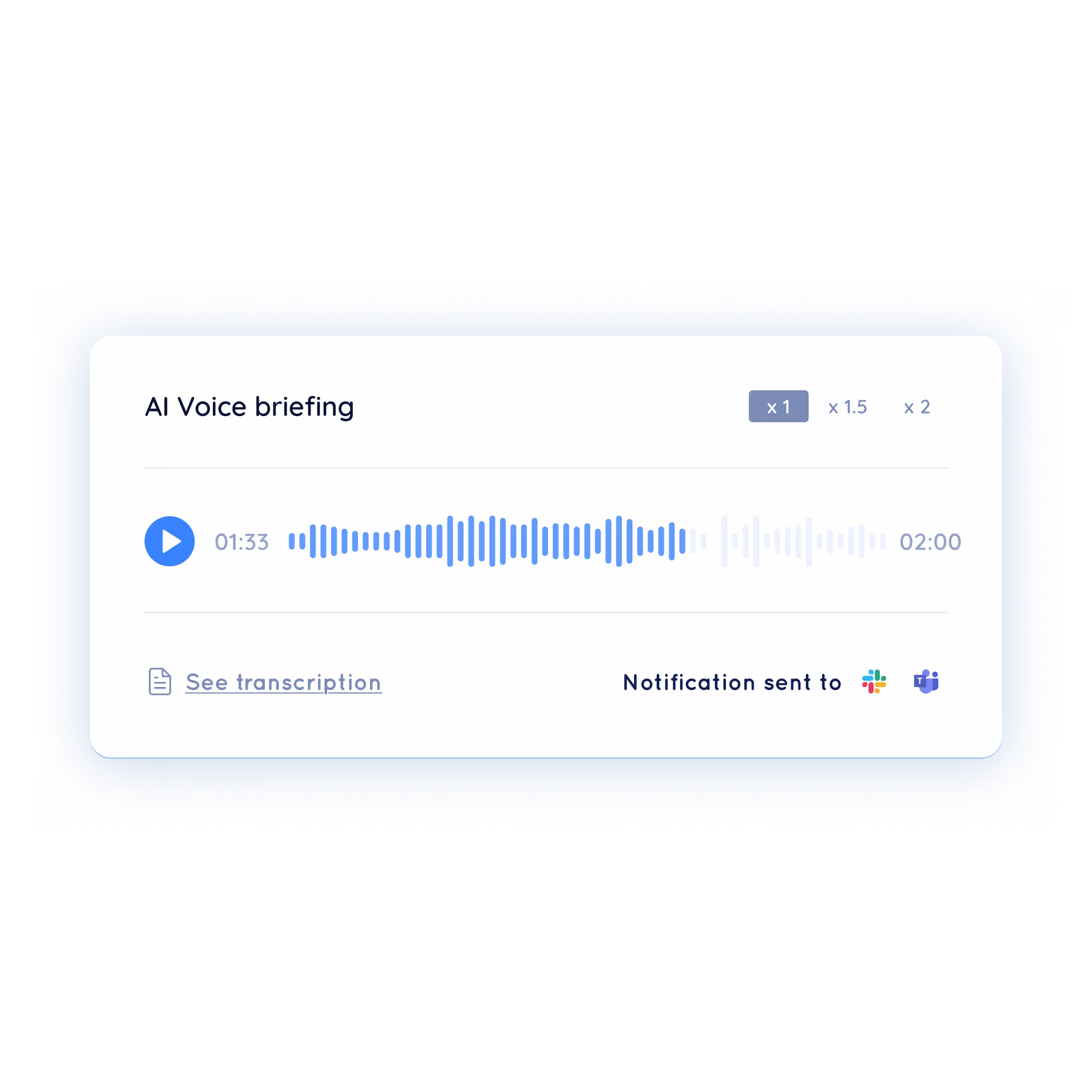 Get notified directly in a dedicated Slack or Teams channel when your meeting is ready. No need to search your prep is right where your team communicates every day.